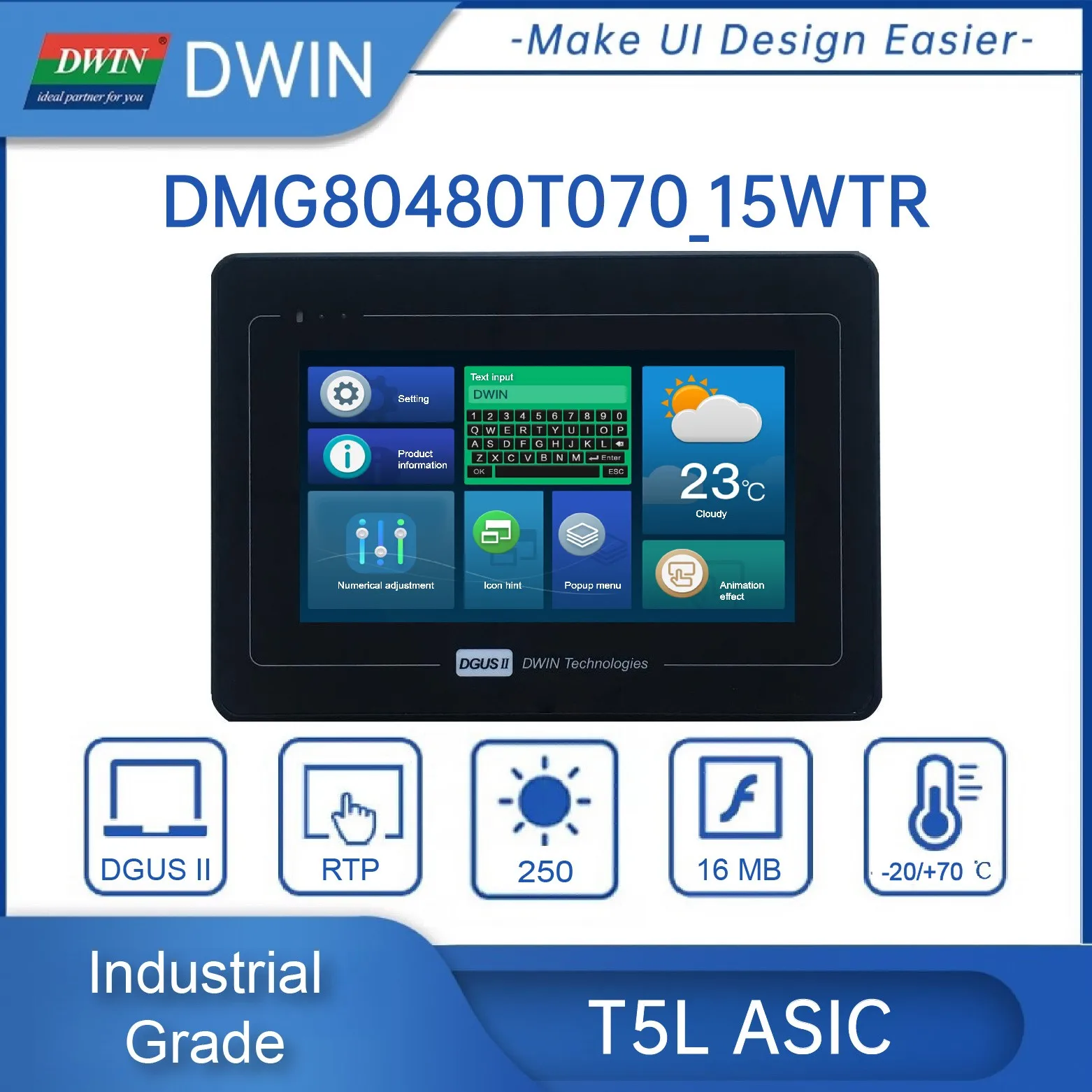 7 Inch 800*480 Pixels Resolution 16.7M Colors HMI TN TFT LCD Display Screen with Enclosure Touch Panel DMG80480T070_15WTR