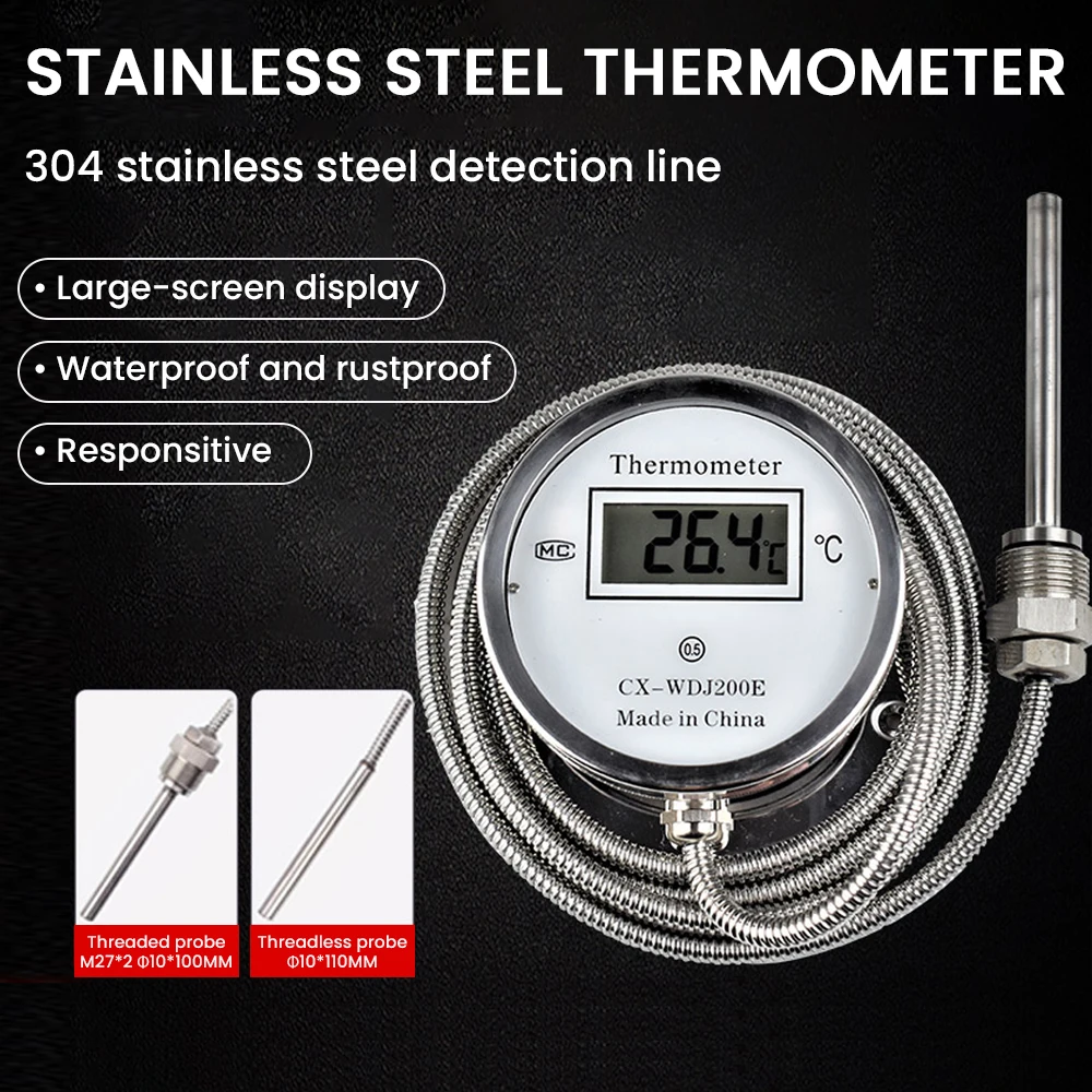 Stainless Steel Temperature Humidity with Display Sensor Industrial Thermometer with Threaded Probe Acid Alkali Resistant