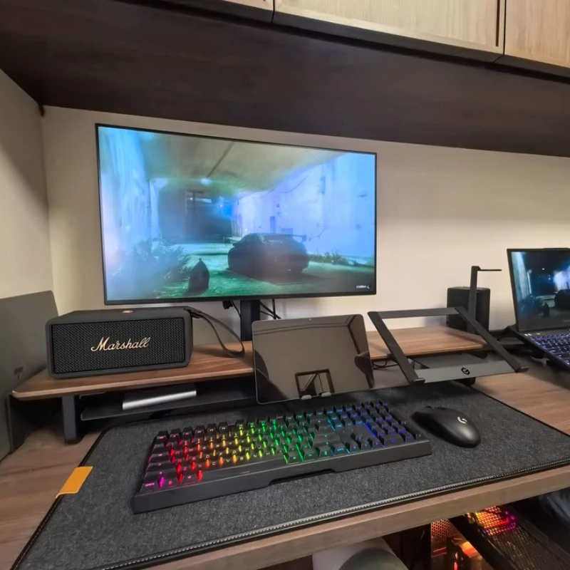 Modular Monitor Riser Stand Ergonomic Desk Organizer Black Gaming Setup Accessories Workstation Computer Screen Storage Shelf
