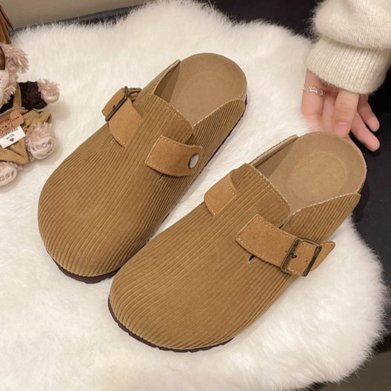 Flats Women Slippers New Casual Suede Slingback Mules Shoes 2026 Spring Walking Dress Shoes Cozy Walking Zapatillas De Mujer