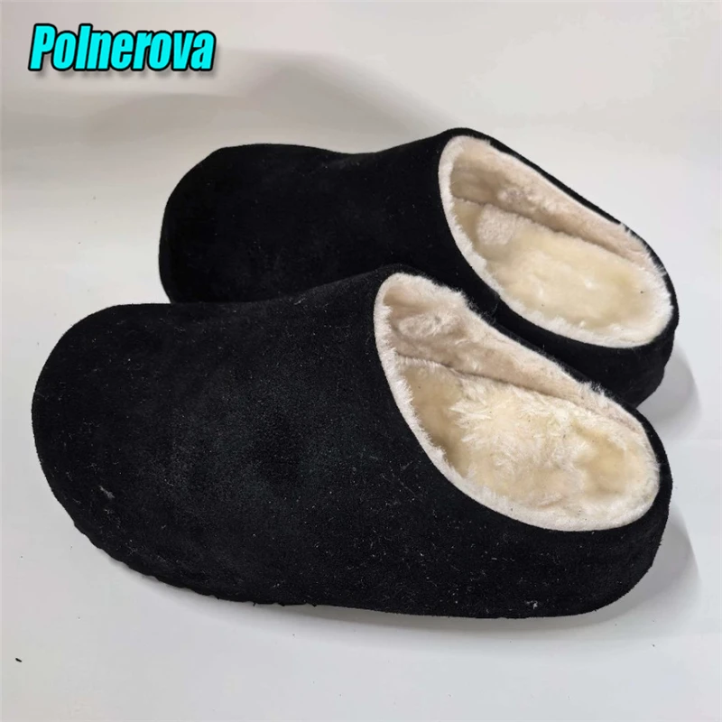 Suede Fluffy Thick Soled Half Slippers for Men Women Autumn Winter New Warm Flat Mules Round Toe Platform Couple Casual Shoes