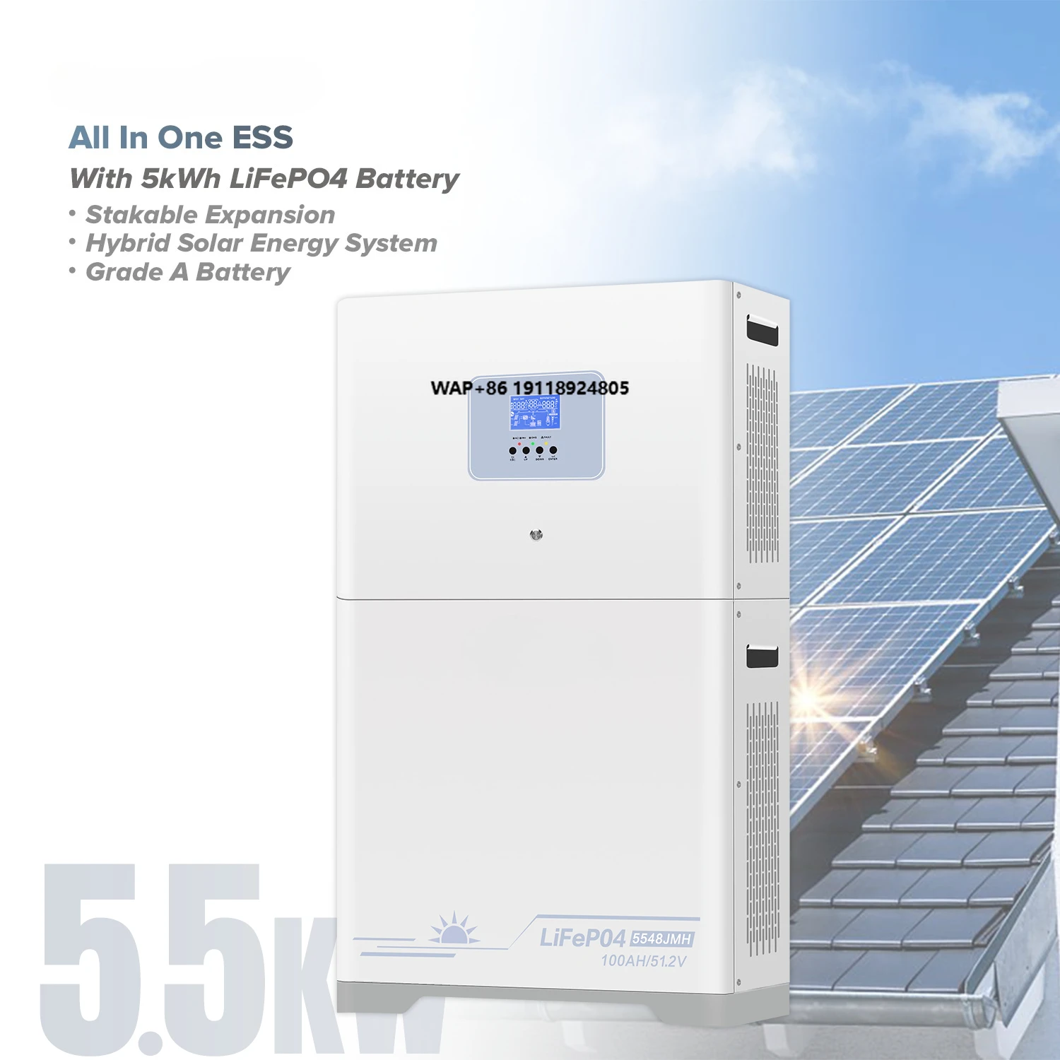 51.2V 100Ah 5kwh Lifepo4 Stackable All in One Solar Inverter Set with Lithium Battery with Built in Battery All Set for Home