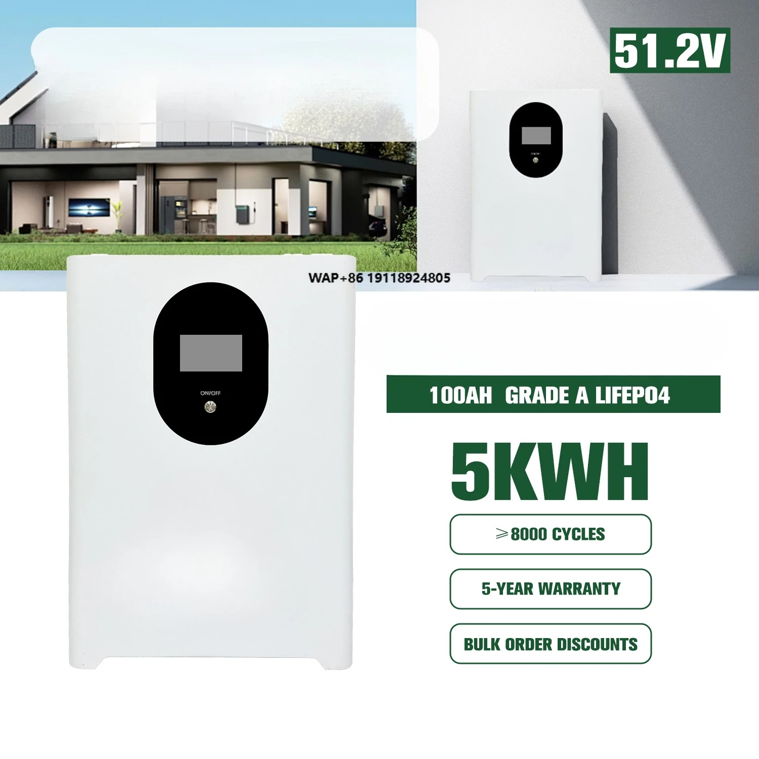 51.2V 48V Lithium Ion Battery Energy Storage Home Solar Systems with Closures and Accessories