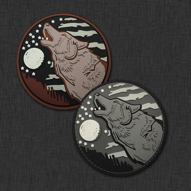 Late night wolf howling Tactical Survival 3D PVC Patch Hook and Loop Badge Clothing Patches Backpack Sticker Accessories Armban