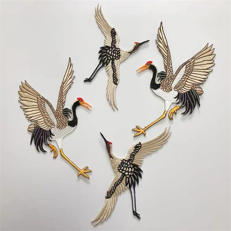 Crane Patches For Clothing Embroidery Applique Iron on Red Crowned Crane Birds Decor DIY Embroidered Stickers For Clothes
