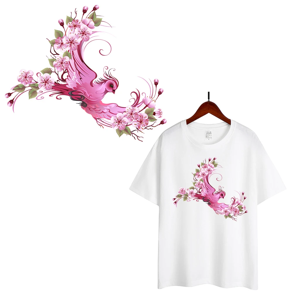Unique Peach Blossom Phoenix Birds Heat Transfer Patches For Clothes DIY A-Level Washable T-shirts Iron-on Thermal Stickers