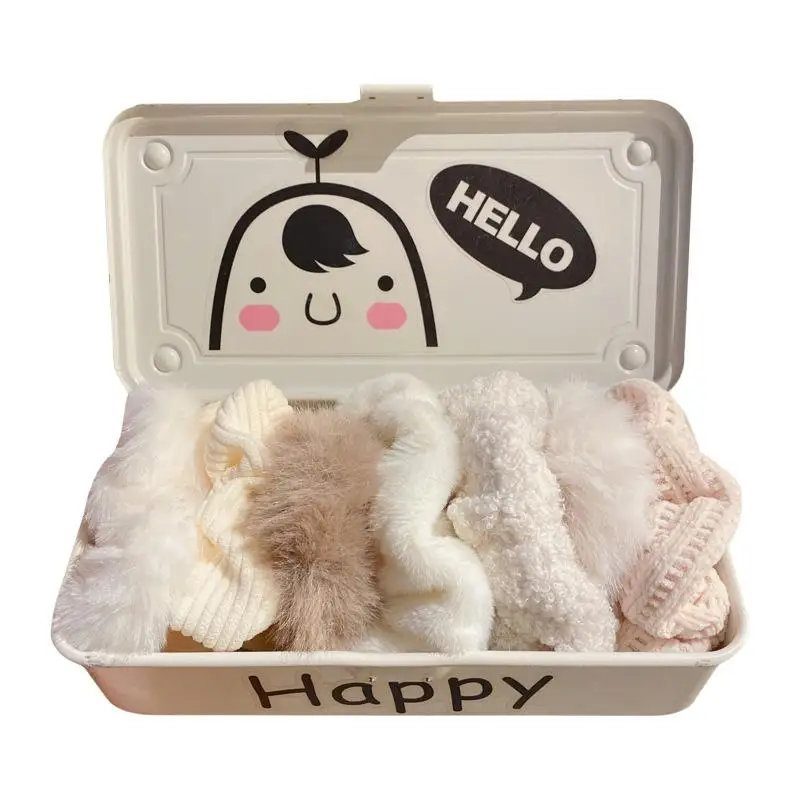 [Y]7Pcs/set Fashion Sweet Furry Hair Scrunchies Elastic Rubber Bands Ponytail Holder Rubber Ties For Girls Hair Accessories