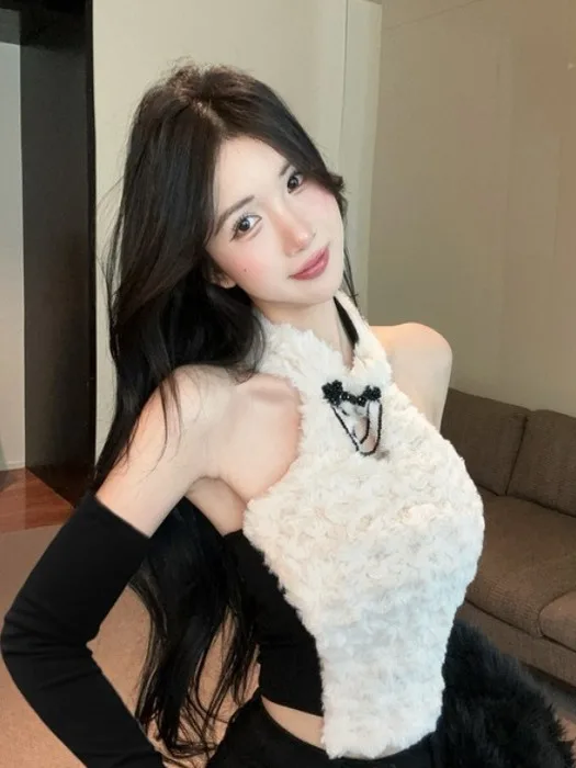 New Chinese Sle Women's Ne Hanging Strap Vest Spicy Girl Tube Top Furry Base irt Inner Wear ort Korean Version