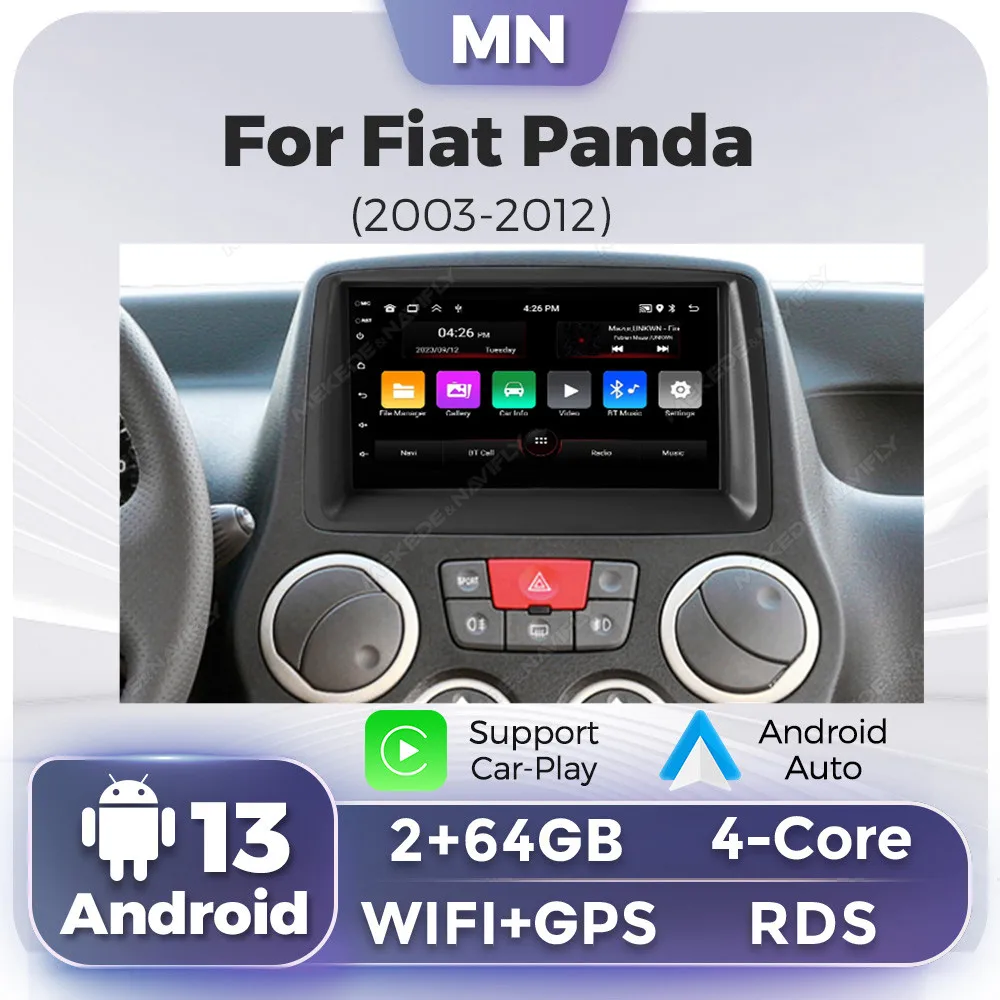 Wireless Carplay 7" Screen For Fiat Panda 2003 2004 2005 2006 2007 2008 - 2012 Car Radio Stereo GPS Multimedia Android 13 Audio