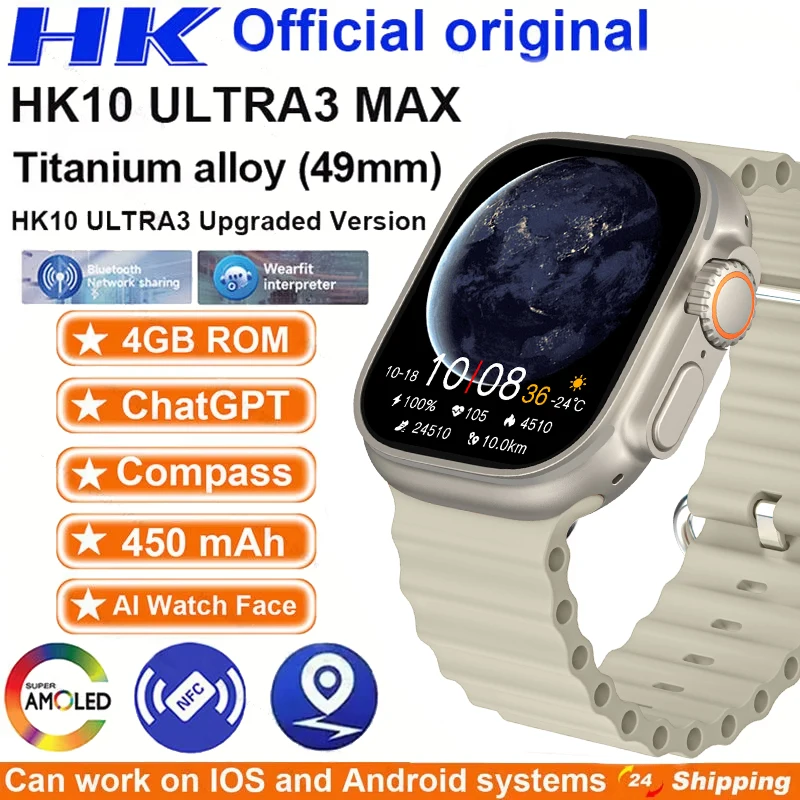 New Original HK10 Ultra 3 SmartWatch 2025 For Man Women 49mm HD AMOLED 4GB ROM AI ROBOT NFC GPS Smart Band Watch For IOS Android