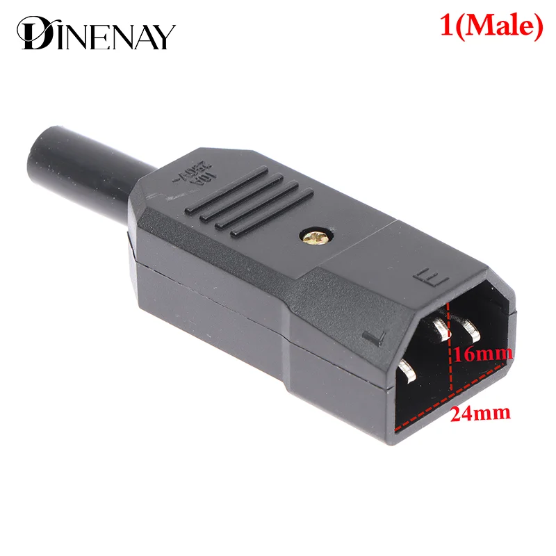 AC 3Pin Socket Straight Cable Plug Connector Female Male Plug C13 C14 16A 250V