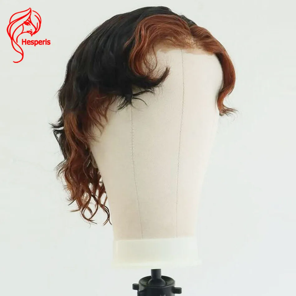 Hesperis Natural Wavy Lace Front Human Hair Wig With Bangs Remy Hair Short Pixie Cut Wig For Male Handsome Male Hair Style