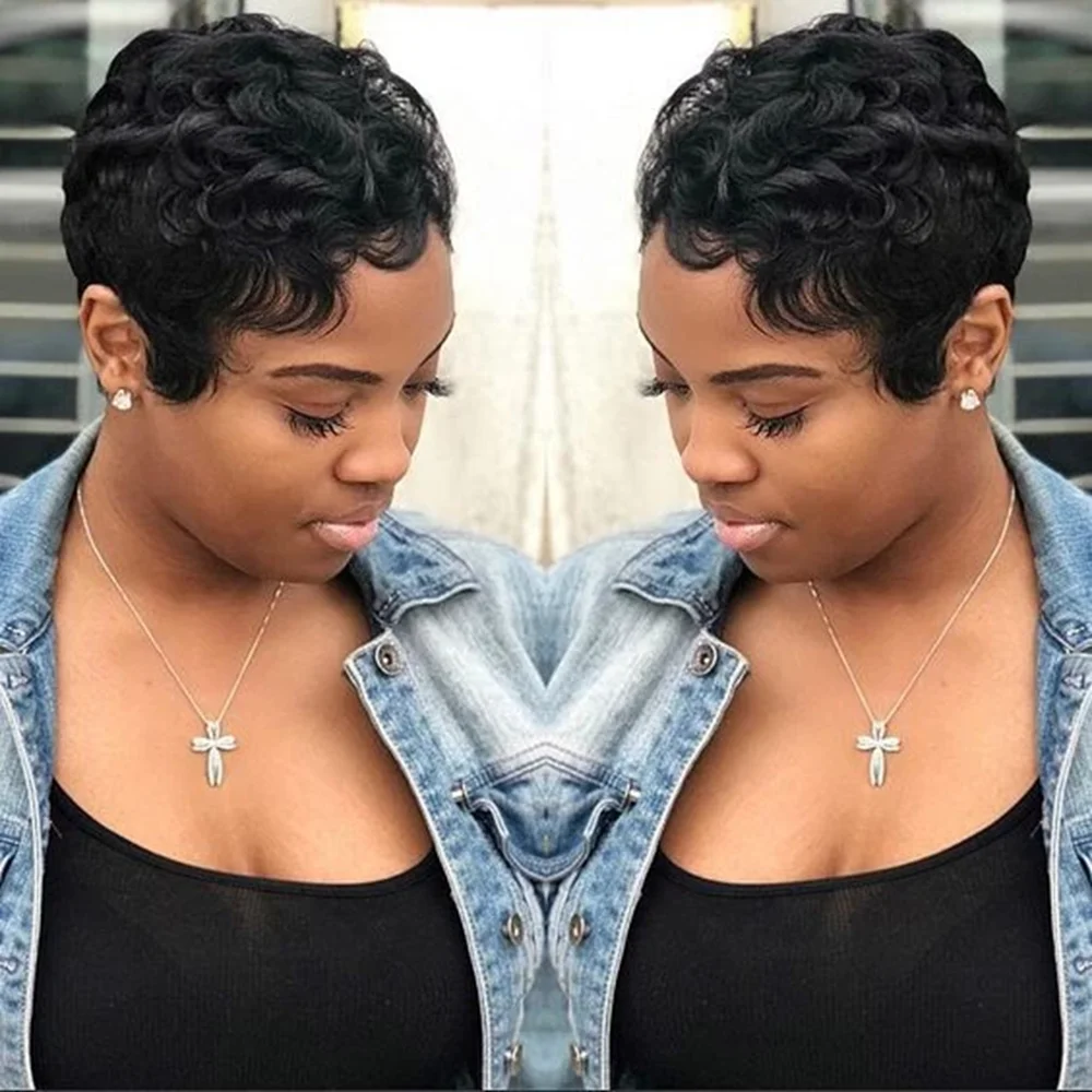 Lekker Clearance Black Short Pixie Cut 100% Human Hair Wigs For Women Brazilian Remy Hair Full Machine Made No Glue Straight Wig