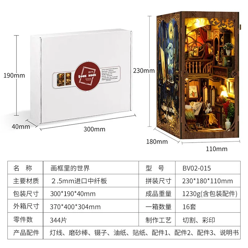 Wooden DIY Puzzle Bookend – 3D House Design with Light Sensing Decoration