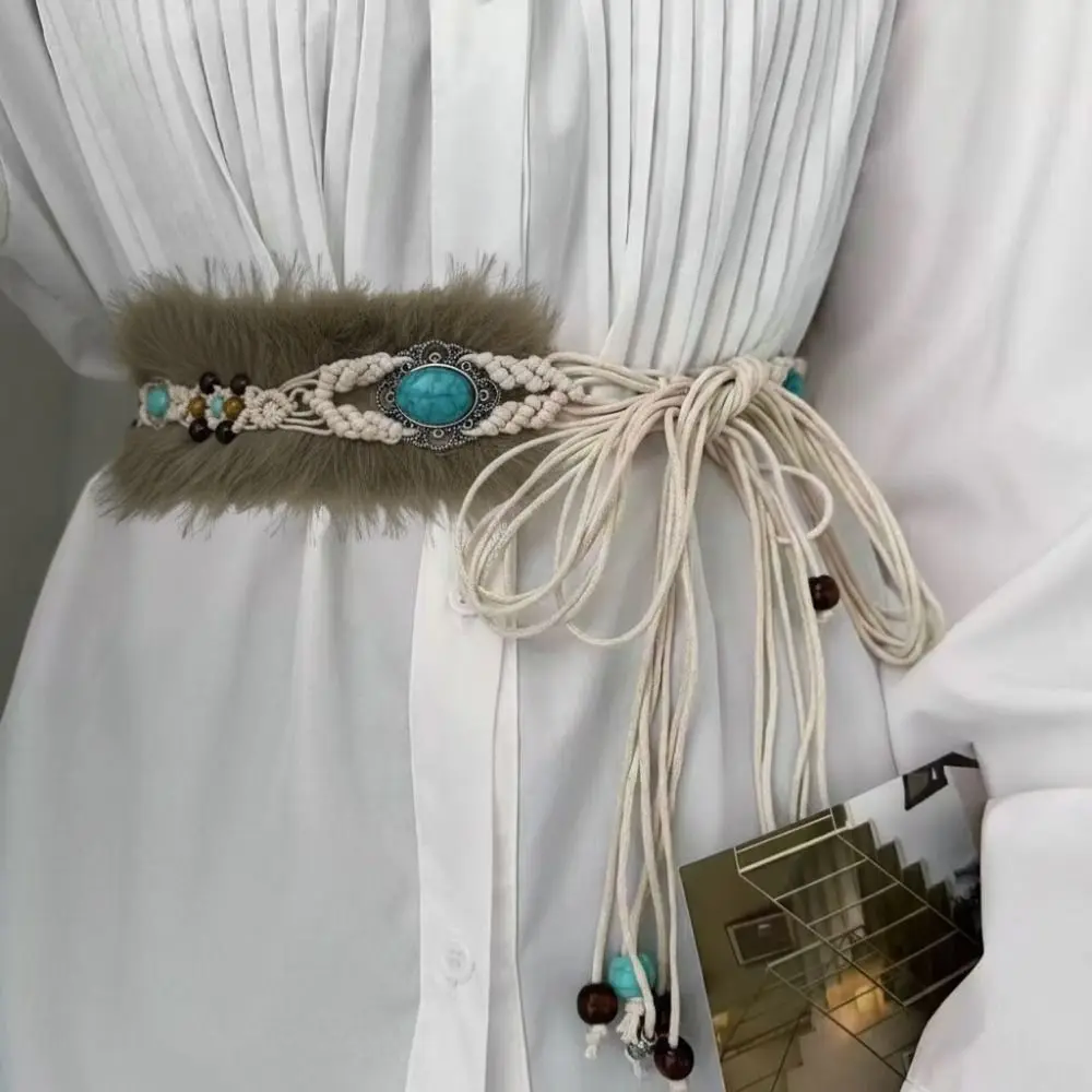 Vintage Trendy Design Faux Fur Waist Rope Belts Punk Spicy Girl Waist Strap Y2K Furry Splicing Belt Women Fashion