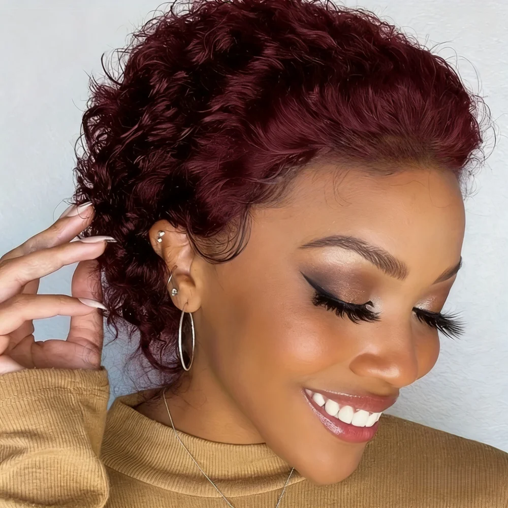 Short Pixie Cut Wig Human Hair 6 Inch Curly Human Hair Wig 13x1 Lace Front Wigs For Women