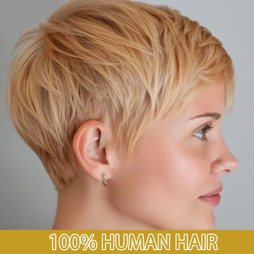 Blonde Hair Cut Wig 4Inches Short Pixie Cut Wig Human Hair 180% Density Full Machine Made Wig Easy Maintenance & Instant Hairsty