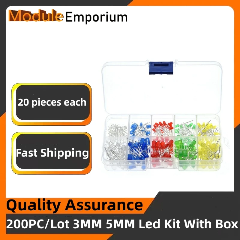 200pcs/Lot 3MM 5MM Led Kit With Box Mixed Color Red Green Yellow Blue White Light Emitting Diode Assortment 20PCS Each New