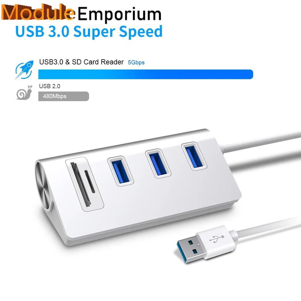 New Arrival Aluminum 10 gbps Super Speed charging data transport 5 in 1 3 ports USB A USB HUB Card reader