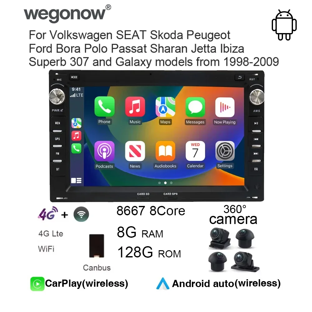 Wegonow Car Radio Android 13 Carplay for Volkswagen BORA/PASSAT B5/SHARAN for SEAT CORDOBA 6L/SEAT LEON 1M/ Multimedia Player 4G
