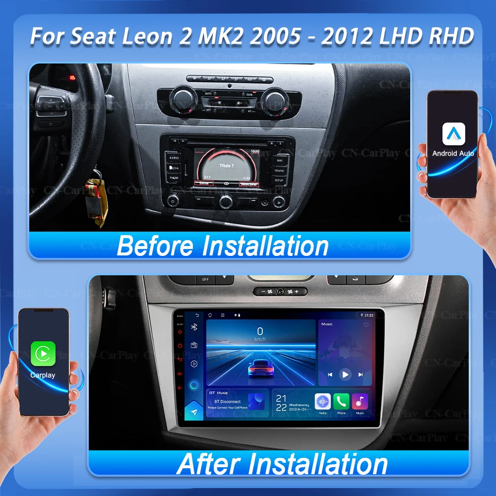 Car Radio Android 16 For Seat Leon 2 MK2 2005 2006 2007 2008 2009 2010 2011 2012 LHD RHD Navigation GPS Carplay Video Player 5G