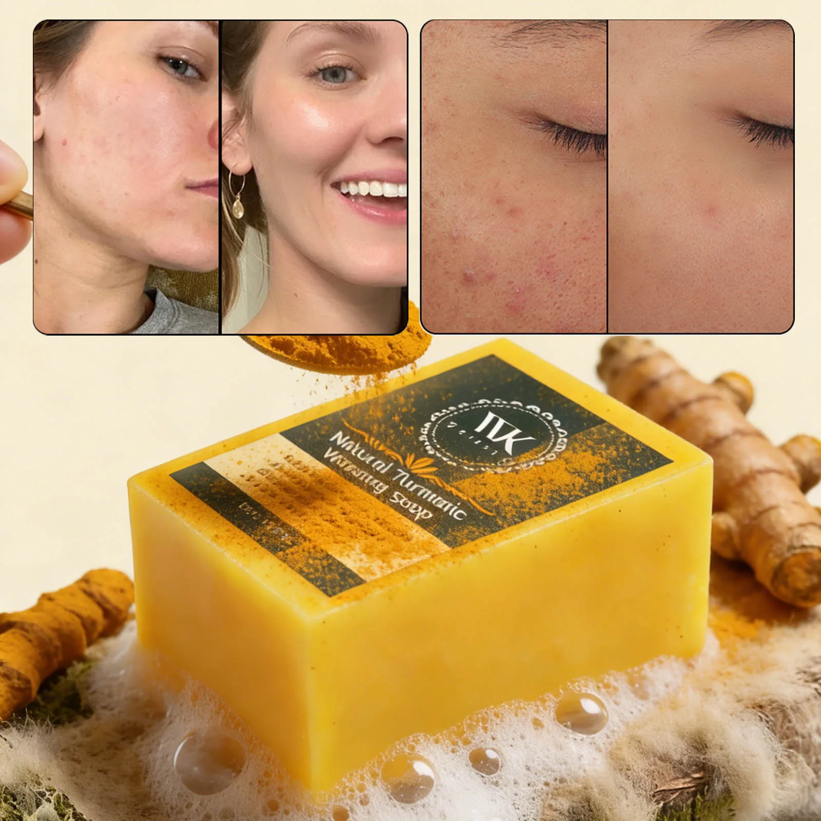 WK JALY Turmeric Lightening Soap Bar, Anti Acne, Dark Spots, With Hyaluronic Acid, Even Skin Tone, For All Skin Types