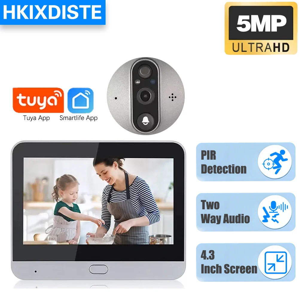 4.3 Inch Baby Monitor Tuya SmartLife Home 5MP WiFi Digital Peephole Door Eye Video Camera Home Security NightVision Video Viewer
