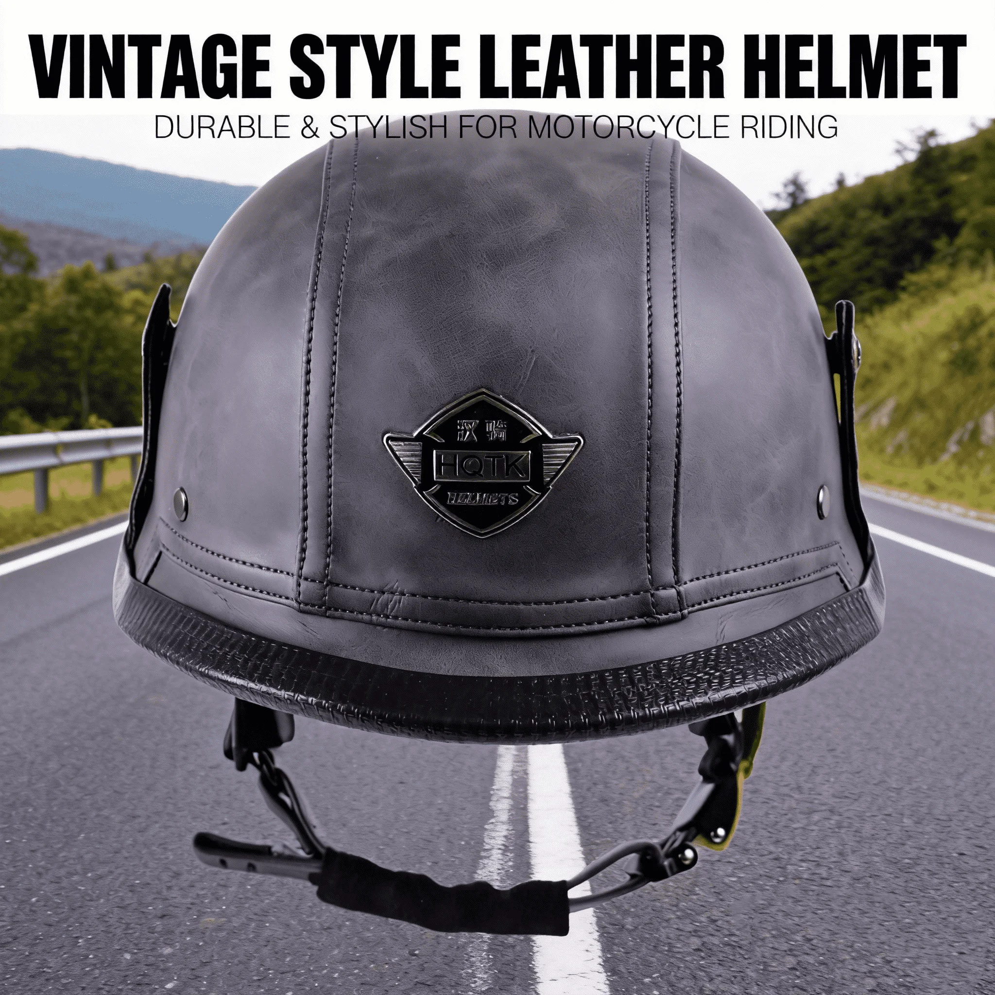 German-made 128mm leather open-face retro half-shell motorcycle helmet with DOT-certified open visor, available in multiple size