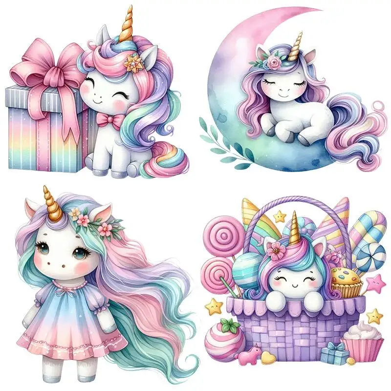 Cute Unicorn Birthday Pattern Heat-sensitive Patches Application Stripes on Kids Clothes ironing Printing for Tops DIY Decals