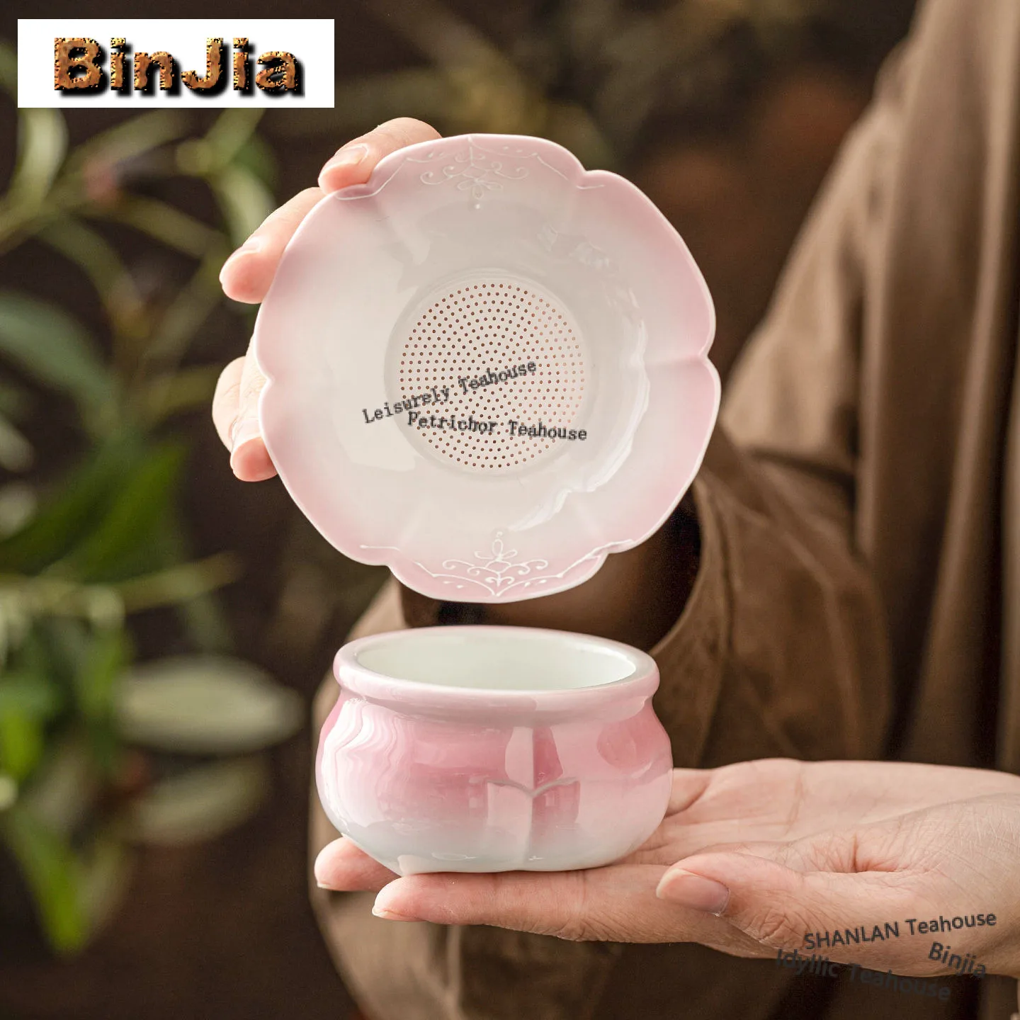 Gradient Pink Tea Strainer Ceramic Leaf Filter Hand-painted Carved Household Brewing Special High-end Set Accessorie Collection