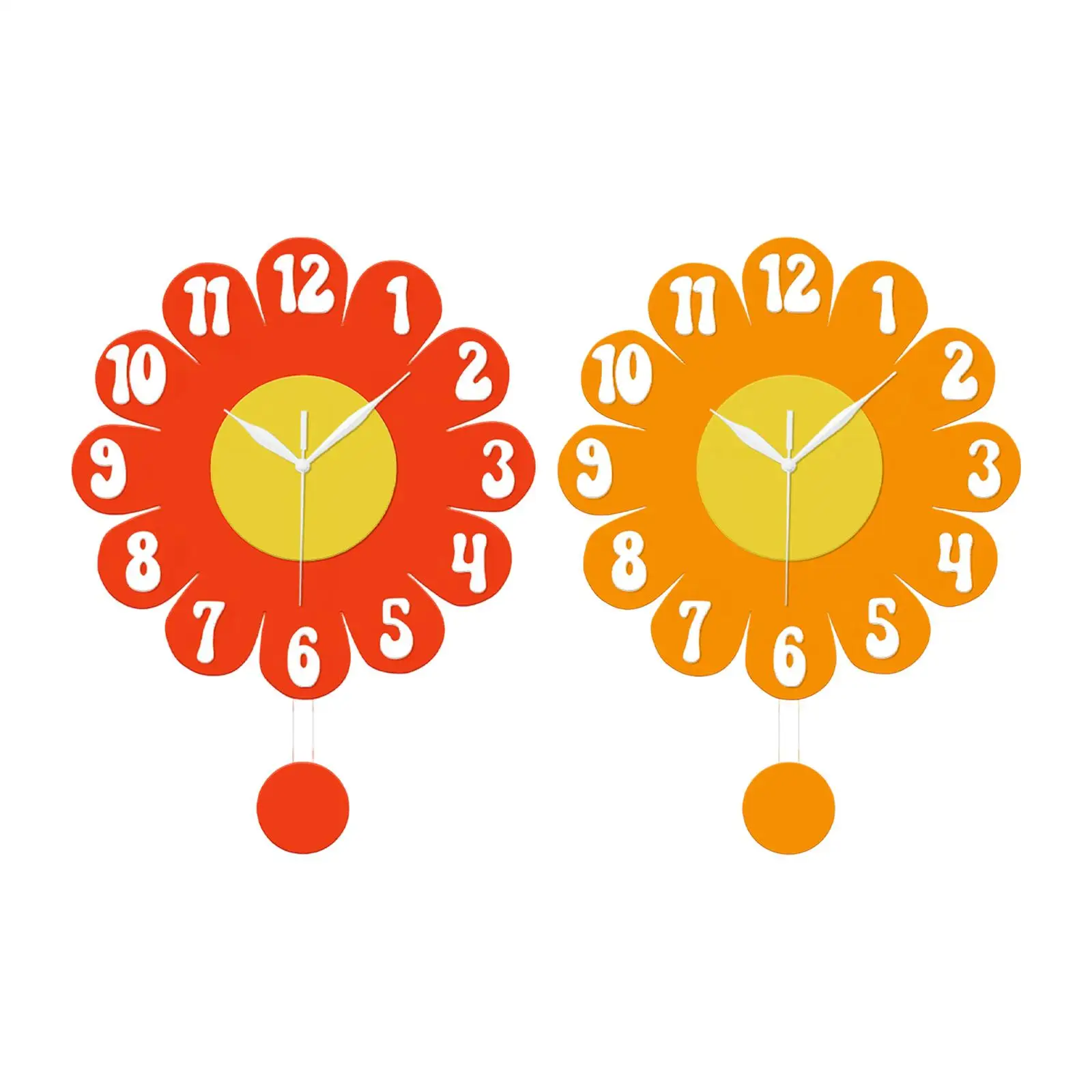 Floral Wall Clock No Ticking Wall Art Decor Time Teaching Hanging Clock Silent for Classroom Living Room Party Nursery Bar