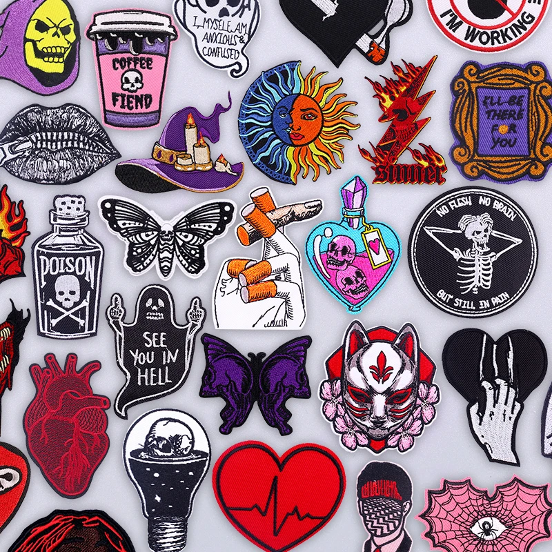 Rock Hip Hop Style Skull Embroidery Patches Iron On Patch For Denim Jacket Hat Biker Punk Rock Music Sewing Applique Stickers