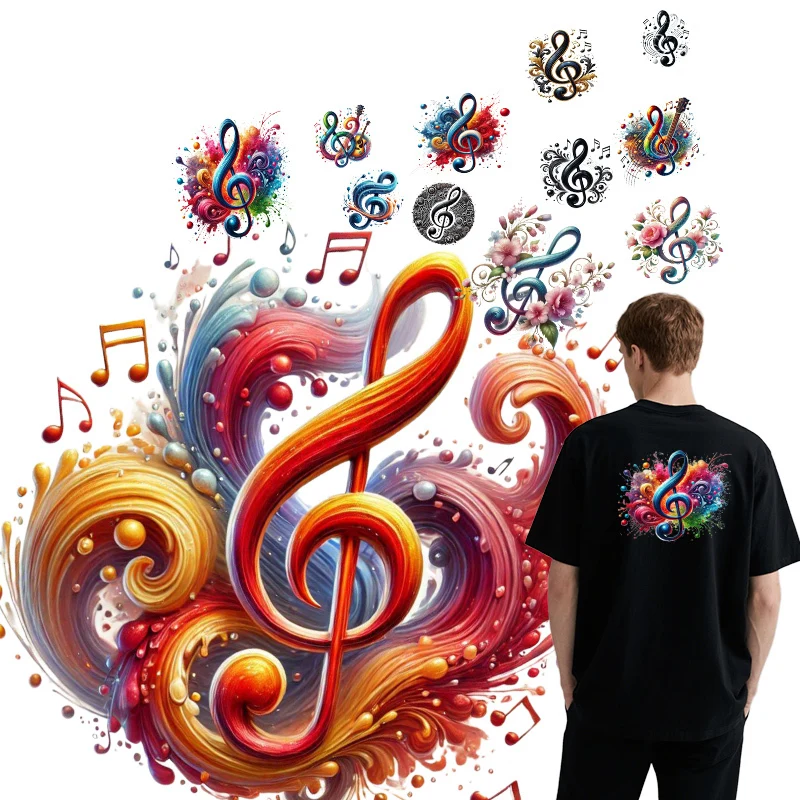 Color music symbols heat transfer printing DTF clothing patches DIY backpacks canvas bags vinyl decorations machine washable