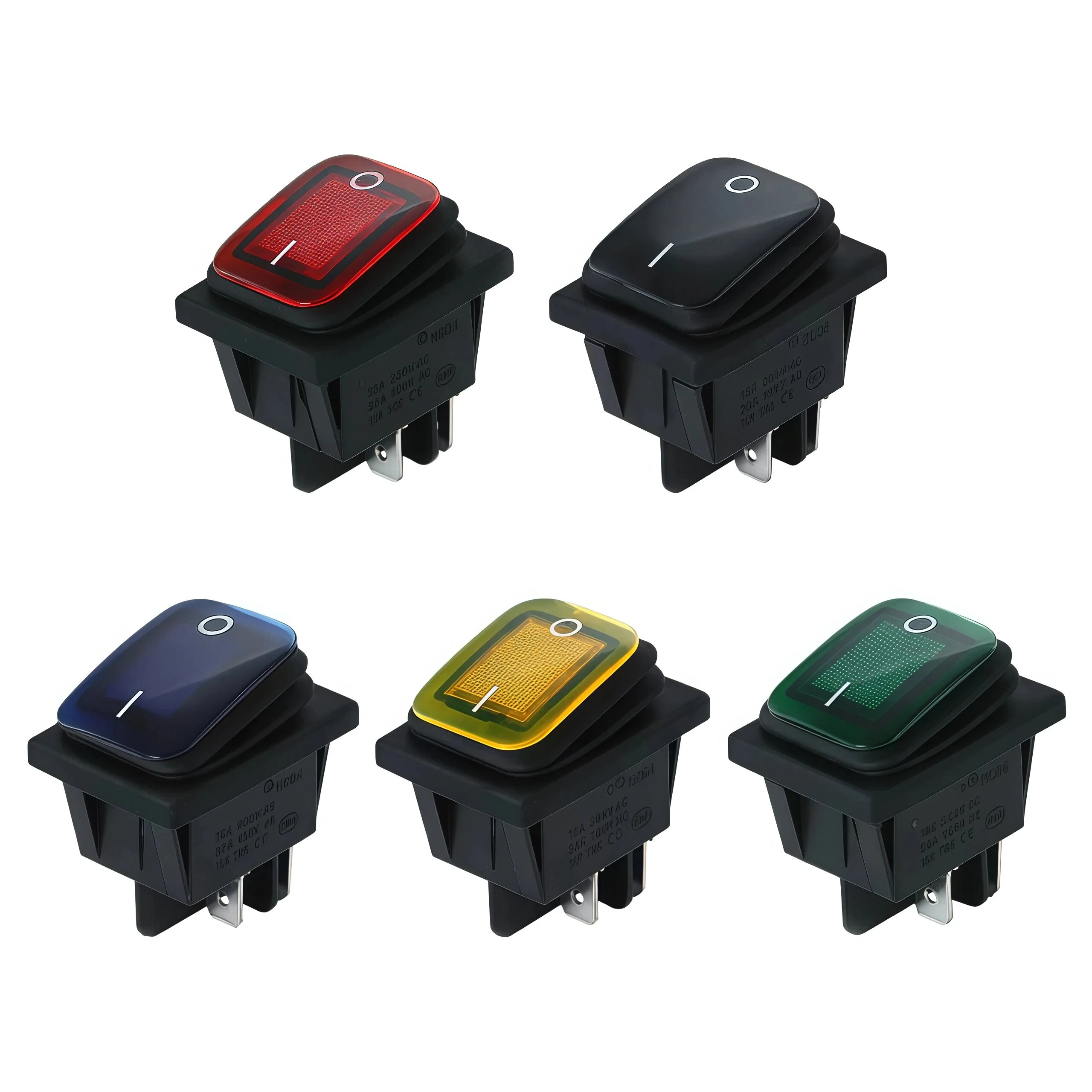 4-pin and 6-pin waterproof rocker switch with light, 220V red and black light, 16A automotive and marine button with LED light