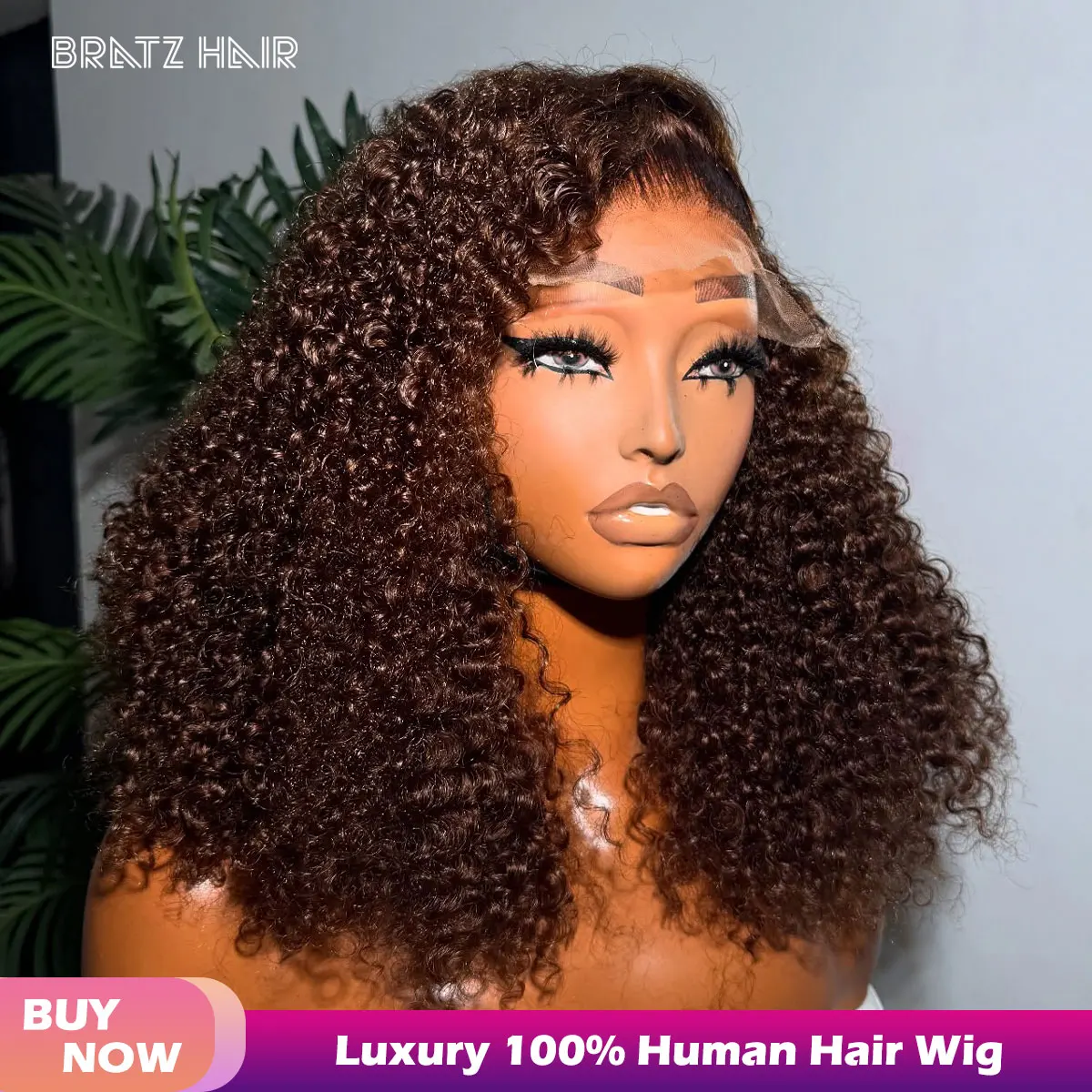 Super Double Drawn Brown 5by5 Closure Pixie Curly Wig Human Hair 13x4 Lace Front Deep Curly Bob Wig for Woman Glueless Wigs