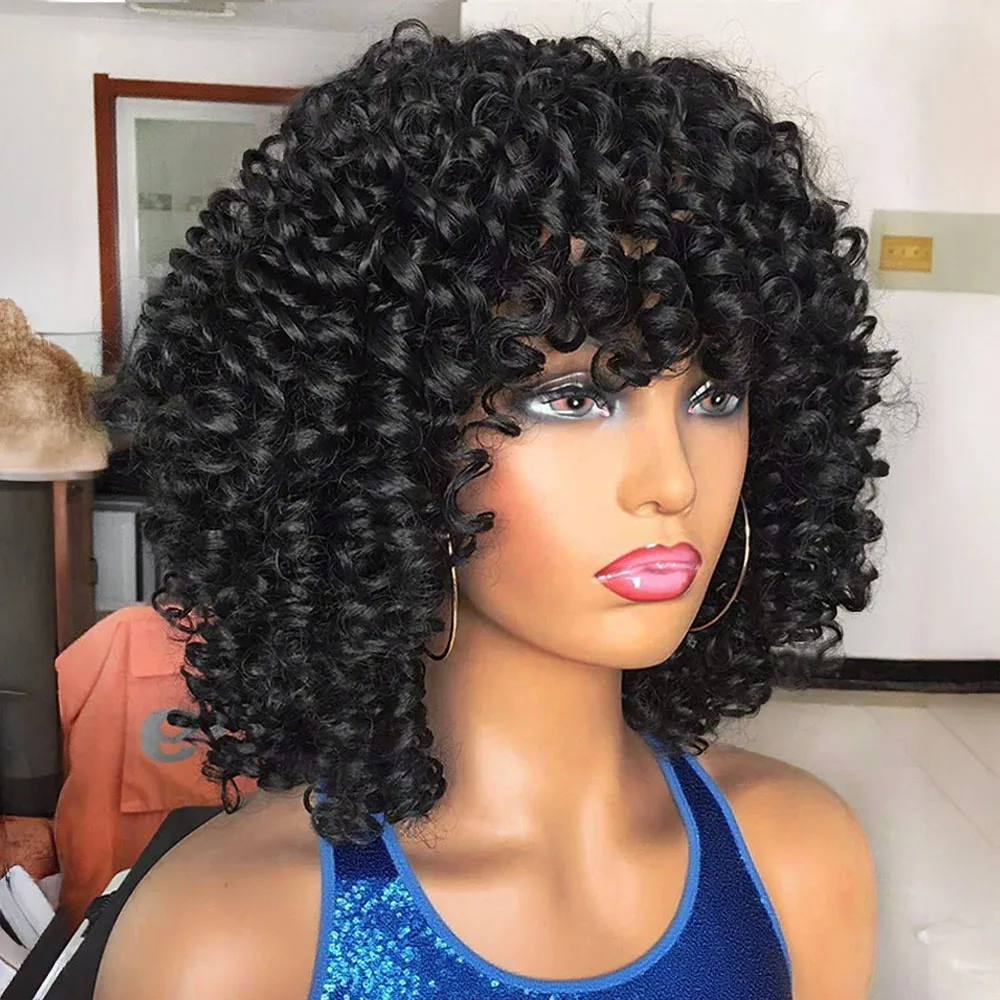 300% Density Brazilian Funmi Egg Curl Pixie Cut Wig 100 Human Hair With Bangs Water Wave Short Bob Wig For Women Preplucked
