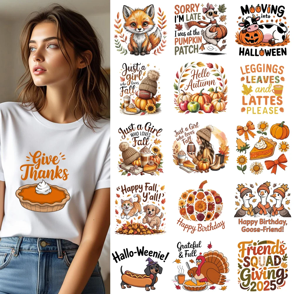 25CM Cute Autumn Harvest Pumpkin Turkey Heat Transfer Patches For Clothes DIY A-Level Washable Shirt Iron-on Thermal Stickers