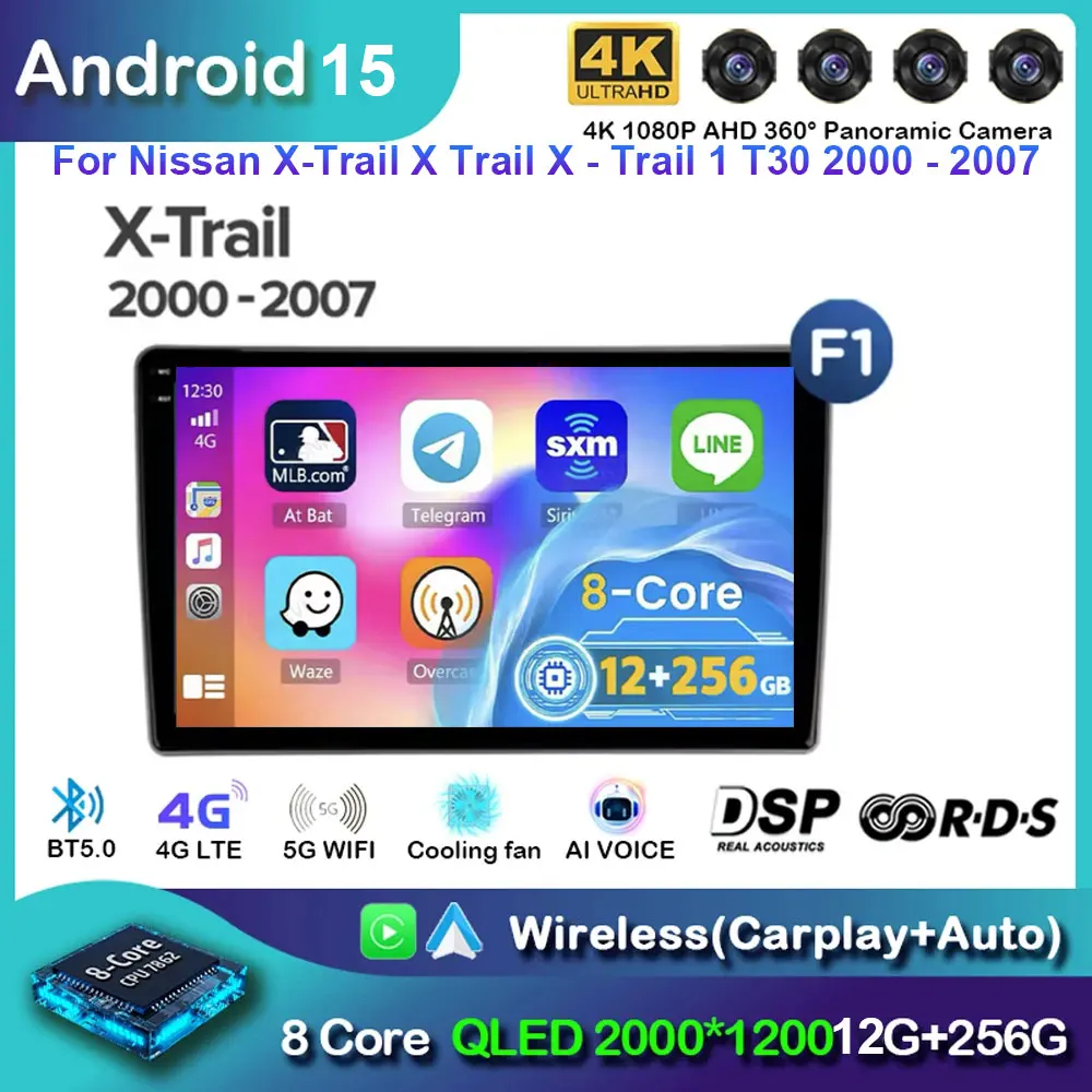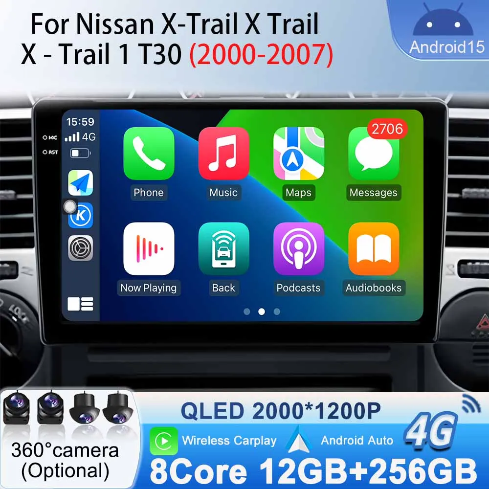 Android 15 Car Radio for Nissan X-Trail 2000-2007 2DIN Stereo with GPS Navigation Bluetooth Carplay Video Player X-Trail 1 T30