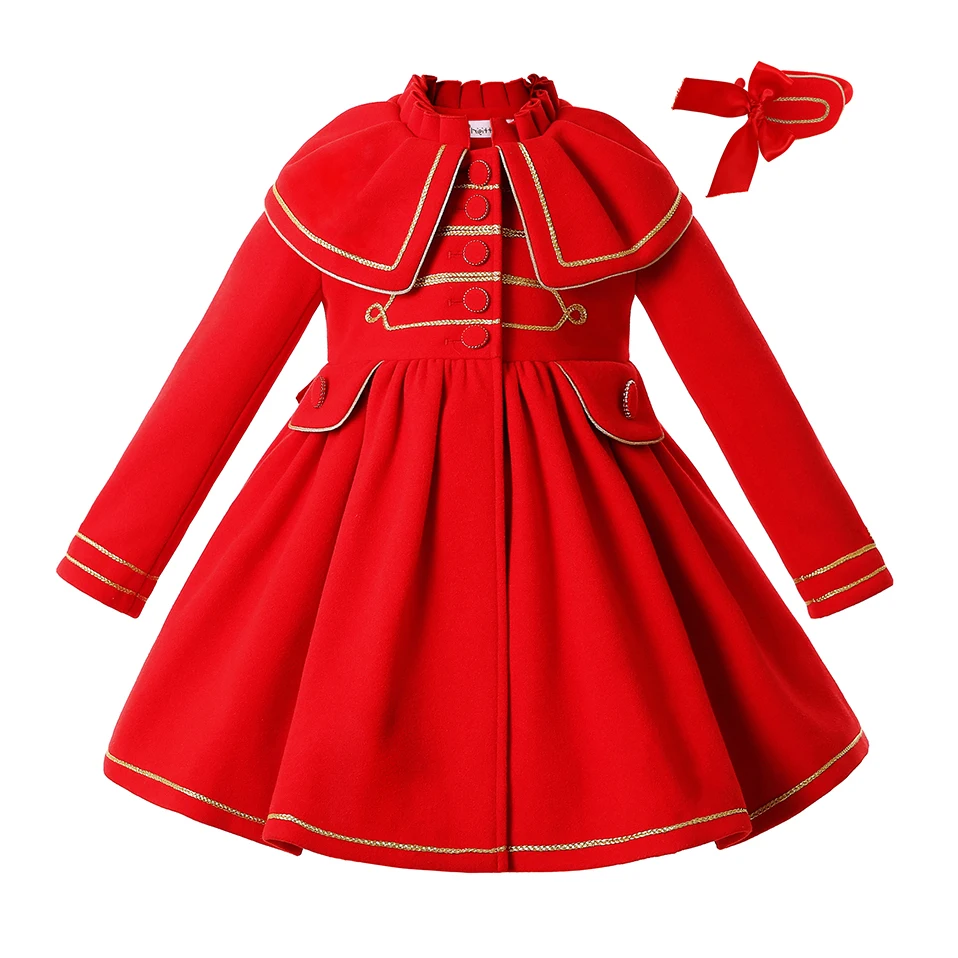 Pettigirl Christmas Winter Children Girls Red Trench Coat Jacket Kids Outwear Clothes Warm Jacket Coat for Little Girls