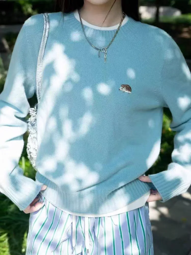 Ladies Knitted round Ne Elastic Comfortable Dopane Color Animal Iron on Patch Spring Autumn New Sle Gentlewoman Top