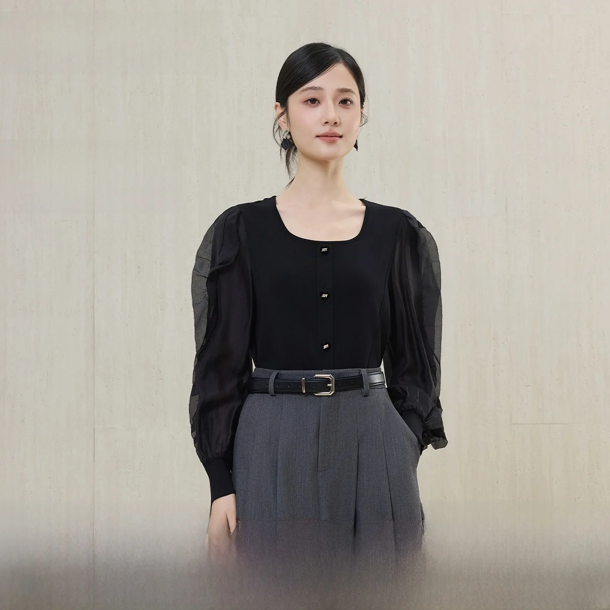 Spring 2026 Women's Knitted Top Square Collar Lace Trim Patchwork Soft Casual Sle Viscose Nylon Blend Long Sve Knitwear