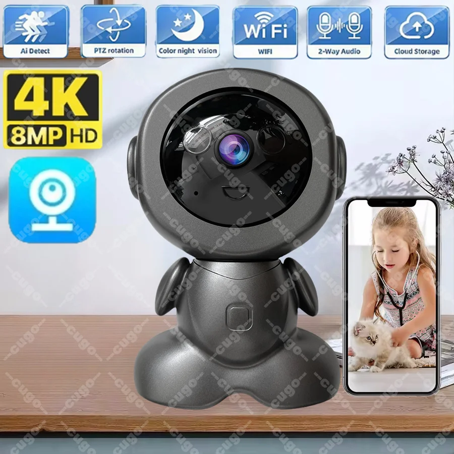 8MP Wifi Surveillance Robot Camera PTZ Security Baby Monitor Two Way Audio Wireless Camera Home IP Al Smart Tracking 8X Zoom Cam
