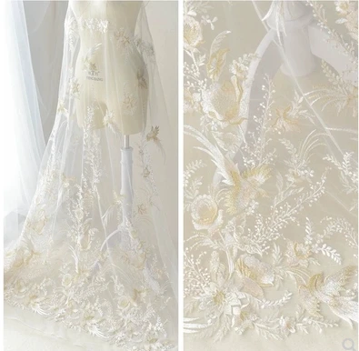 Bird language floral Embroidery Lace Accessories Wedding Dress Handmade Diy Fabric Clothing Cloth