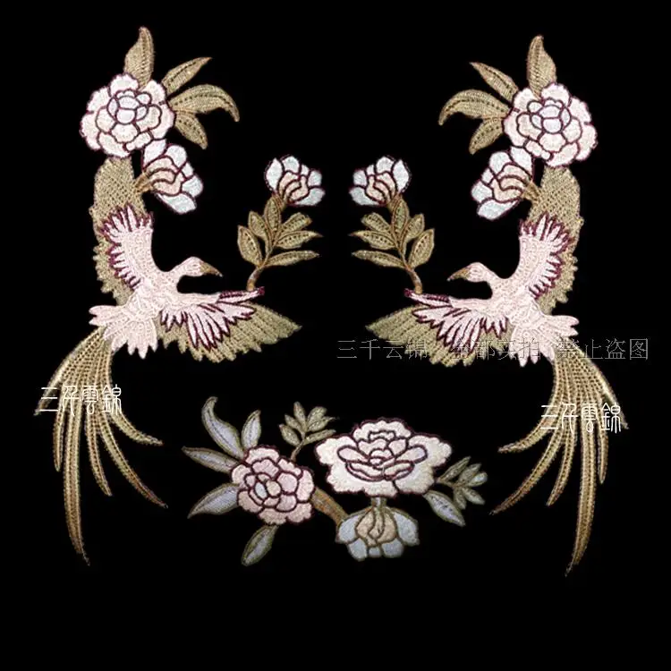aerial bird iron on adhesiver Phoenix bird combination embroidery lace cloth paste fabric applique patch