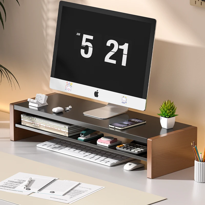 Wooden Stand LED LCD Computer Monitor Riser Desktop Organizer Display Bracket Rack Wooden Monitor Stand