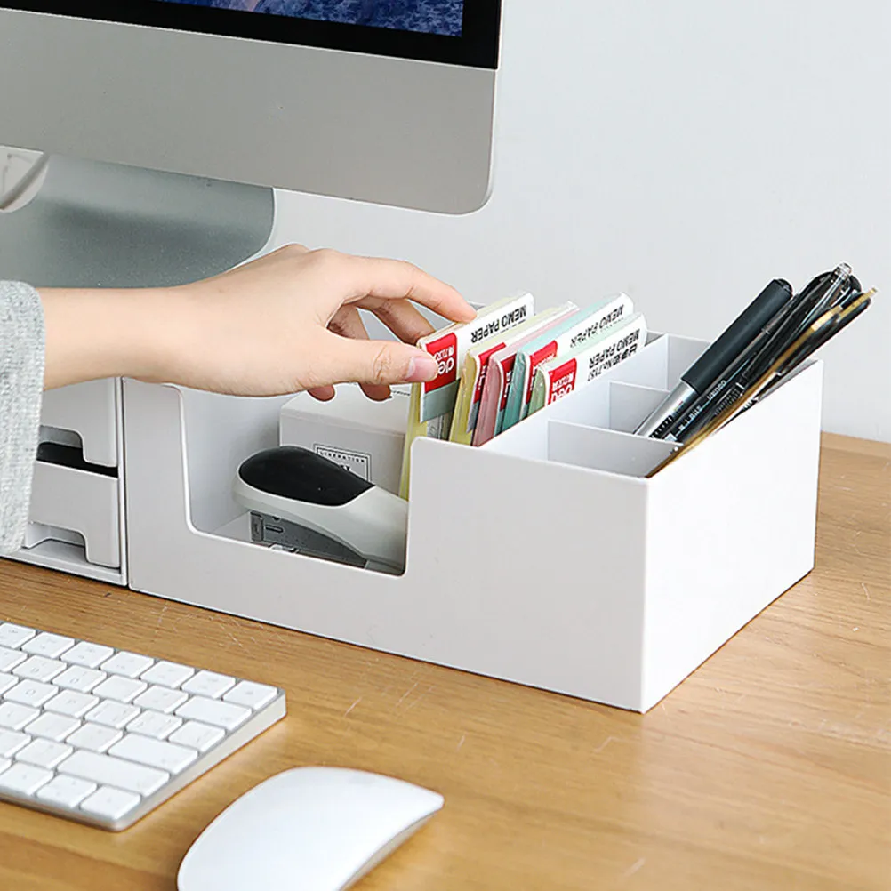 Computer Monitor Elevated Shelf with Storage Compartment for Desk Organizer White Stationery Sundries Cosmetics Holder Office