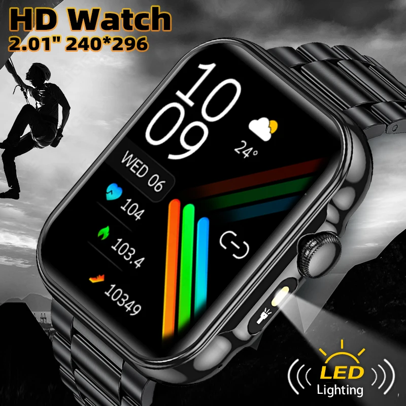 LIGE New 2.01" HD Full Touch Screen Smart Watch For Men Women LED Flashlight Bluetooth Call Voice Assistant Sport Smartwatch Men