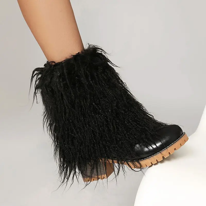 ORCHA LISA Fashion 2025 New Women's Mid Calf Boots Round Toe 5cm Block Heel Furry Plus Size 41-43 Dating Winter For Girls