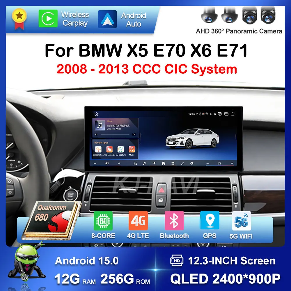 Carplay Car Video Multimedia Player QLED Screen GPS for BMW X5 E70 X6 E71 2008 - 2013 CCC CIC System Android 15 Bluetooth 4G DSP