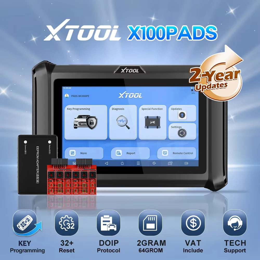 XTOOL X100PADS Key Programming Tools For All Key Lost/ Add Keys/ Key Generation Auto Programmer Key Matching Full System Car Diagnostic Tool OBD2 Scanner 32+ Reset FCA Automotive DoIP CANFD 2 Years Free Update